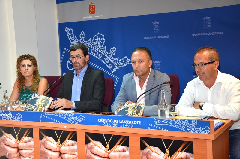 El vicepresidente del Cabildo, Joaquín Caraballo, junto a la consejera de Educación y Cultura de la Corporación insular, Emma Cabrera; el alcalde de Tinajo, Jesús Machín; y el edil de Fiestas de este Consistorio, Antonio Morales, presentaron esta mañana en el Cabildo de Lanzarote los programas de la XXV Feria Insular de Artesanía y de las Fiestas de Nuestra Señora de Los Dolores, que tendrán lugar en la localidad de mancha Blanca entre el 11 y el 16 de septiembre próximos. El presidente del Gobierno de Canarias, Paulino Rivero, será el encargado el próximo miércoles de dar el pistoletazo de salida a los festejos.