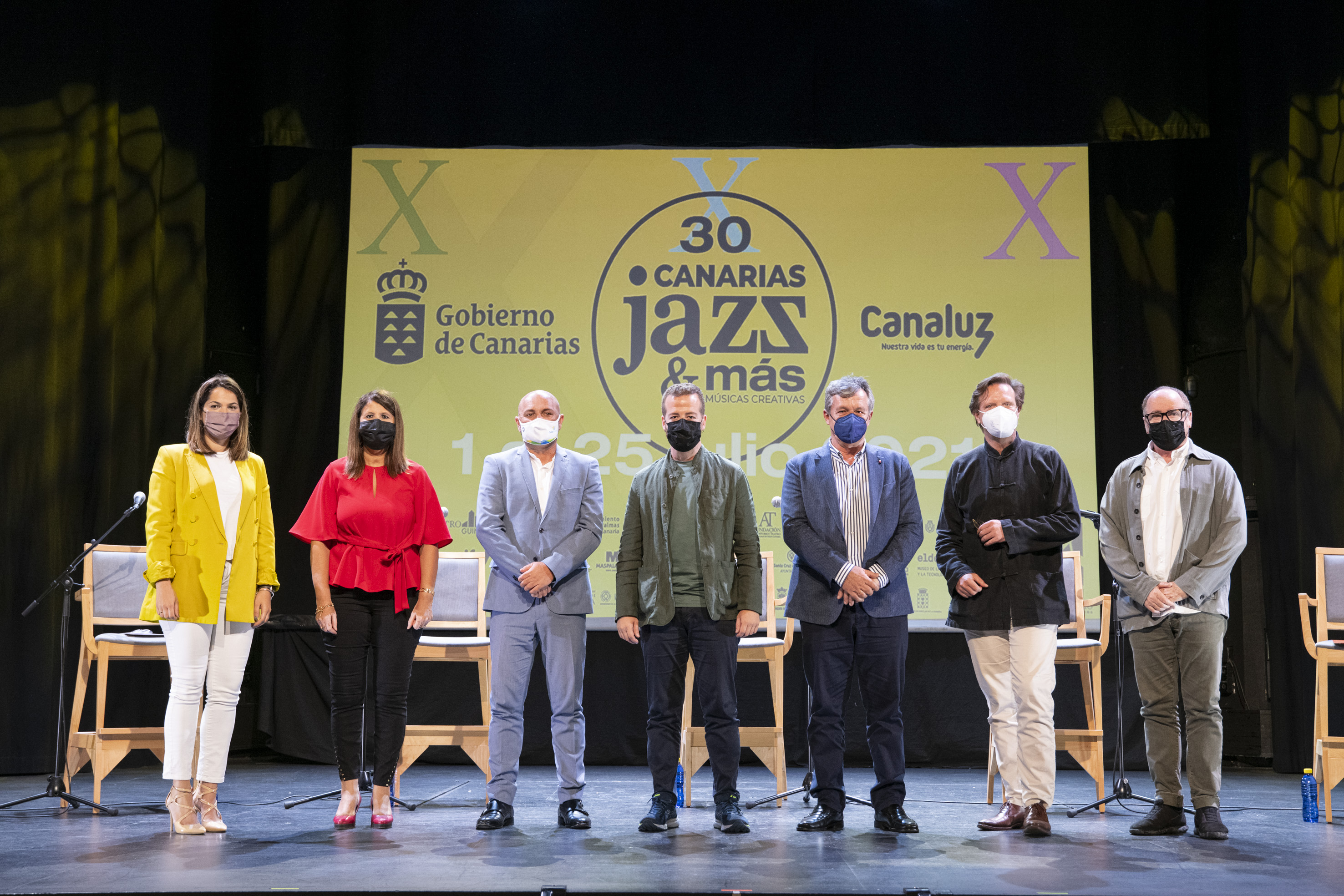 También acudieron a la presentación Carlos Álamo, consejero de Turismo del Cabildo de Gran Canaria, que valoró “la cultura como elemento potenciador de Gran Canaria como destino turístico”; Mercedes Díaz, concejala de Participación Ciudadana de San Bartolomé de Tirajana se congratuló “por el regreso del festival a nuestro municipio, en dos espacios tan emblemáticos como el Faro de Maspalomas y el Palacio de Congresos de ExpoMeloneras”; Carolina Alonso, concejala de Cultura de Santa Brígida, “un municipio que ha estado casi desde el principio en el festival, que apostó el año pasado en los momentos más duros de la pandemia por su celebración y que no iba a dejar de estar en el 30º aniversario”; Tilman Kuttenkeuler, director general de la Fundación Auditorio Teatro, “muy feliz por tener en nuestro teatro a Wynton Marsalis con la Jazz at Lincoln Center Orchestra”; además de Lorenzo Muñoz Cerdeña, director general de Canaluz, principal patrocinador privado del festival, que afirmó no haber dudado “ni un instante cuando se nos presentó la oportunidad de patrocinar el festival. Somos una empresa de energía renovable y la cultura también es energía”.