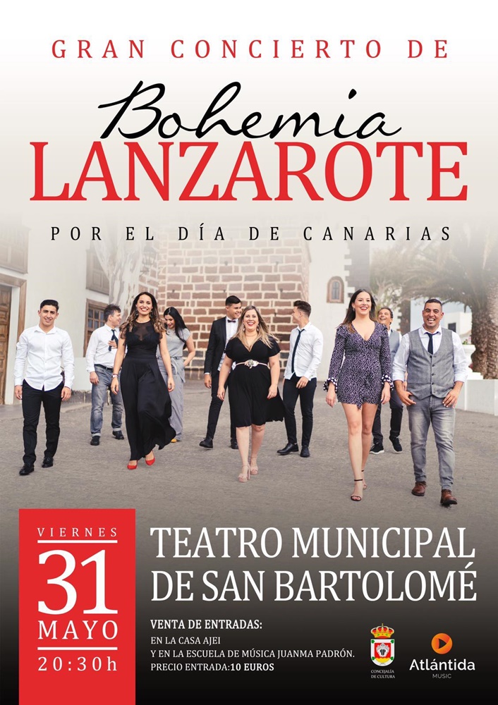 El grupo Bohemia de Lanzarote celebra un concierto especial con motivo del Día de Canarias este 31 de mayo en el Teatro Municipal de San Bartolomé a las 20.30 horas dentro de la agenda del ayuntamiento por el día de la comunidad.