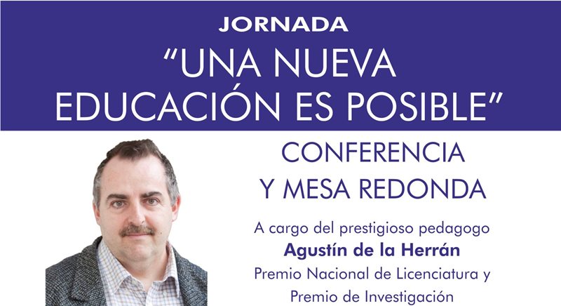 El reconocido pedagogo y Doctor en Educación, Agustín de la Herrán, participará en la Jornada “Una nueva Educación es posible” que se celebrará este martes día 3 de junio en el Arrecife Gran Hotel, a las 19:30 horas, y que ha sido organizada por el Instituto Integral de Pensamiento Avanzado, en colaboración con el Grupo Lancelot y el Grupo Esacan.
