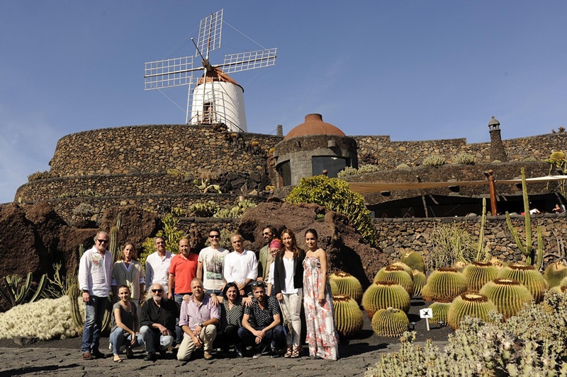Después de una mañana atendiendo en numerosas entrevistas a los medios de comunicación de Lanzarote, Fuerteventura y Tenerife, el Jurado del XIV Festival Internacional de Cine de Lanzarote (FICL2014) visitó el Jardín de Cactus. Integrado en la red de los Centros de Arte, Cultura y Turismo, este peculiar jardín botánico fue la última intervención de César Manrique en Lanzarote y fue inaugurado en 1990.