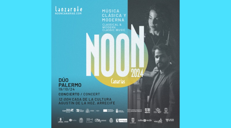 El festival de música clásica y moderna 'Noon', organizado por Cultura Arrecife que dirige la concejala responsable de esta área en el Ayuntamiento de la capital lanzaroteña, Abigail González, celebra este sábado 19 el segundo concierto de los programados para octubre en Arrecife a cargo del tinerfeño Dúo Palermo, formado por Elizabeth García Pérez y David Duque Infante quienes han unido su talento para crear y acercar al público un repertorio cercano y ligero.