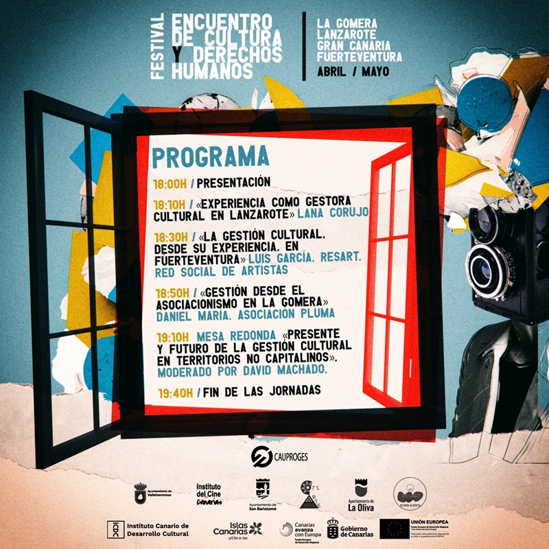 Encuentro de Cultura y Derechos Humanos visibiliza así la agenda cultural de poblaciones no capitalinas y núcleos rurales y fomenta el diálogo con el fin de dar solución a la masiva concentración de recursos tanto públicos como privados, que provocan que la doble insularidad también se sufra en el ámbito de la cultura. Este Festival cuenta con el apoyo de las empresas públicas del Gobierno de Canarias, Promotur Turismo de Canarias S.A. e Instituto Canario de Desarrollo Cultural S.A., la colaboración del Ayuntamiento de San Bartolomé y la producción y organización de Cauproges.