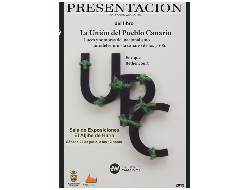 La Sala de exposiciones El Aljibe acoge este sábado, 22 de junio, a las 12:00 horas, la presentación del libro ‘La Unión del pueblo canario-Luces y sombras del nacionalismo autodeterminista canario de los 70-80’, de Enrique Bethencourt.
