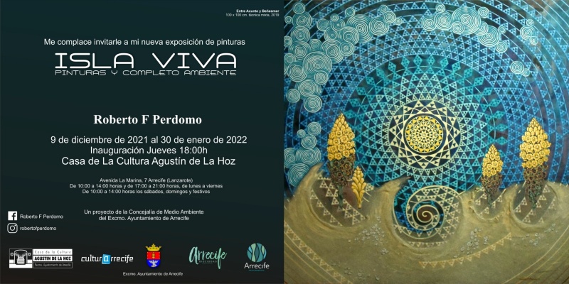 En Isla Viva se dan cita la estética indigenista canaria y la concienciación para la preservación de la flora y fauna, en una simbiosis perfecta con la etnografía de la cultura isleña. La exposición estará abierta al público hasta el 30 de enero de 2022 y está conformada por 22 obras del pintor y diseñador gráfico lanzaroteño Roberto F. Perdomo, licenciado en Bellas Artes por la Universidad de La Laguna y con un extenso currículum profesional a sus espaldas y multitud de exposiciones de arte.