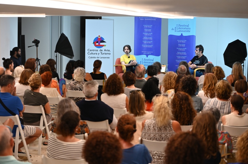 El escritor Andrés Neuman "hizo suyo" el Islote de Fermina por unas horas para compartir anécdotas y secretos de su vida literaria y personal con una sala llena y expectante en la penúltima sesión del I Festival de Literatura de Lanzarote.