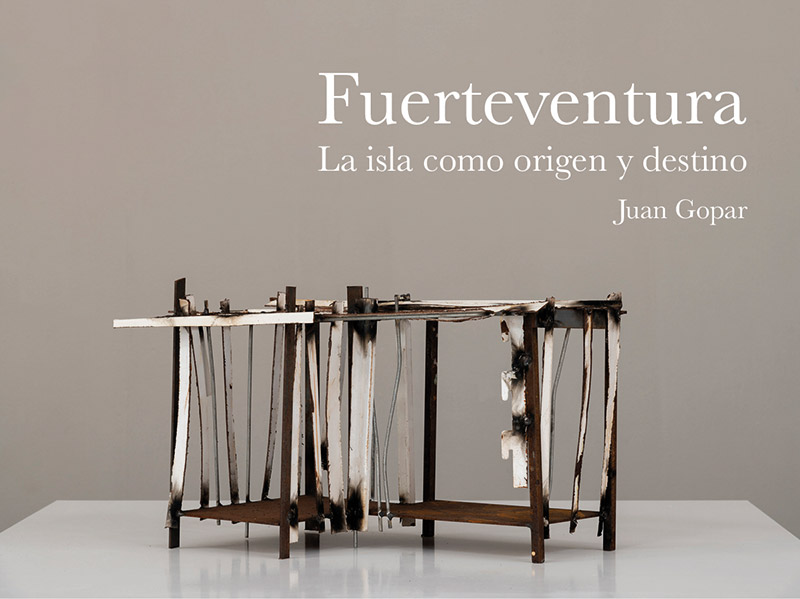Señala además que “se podría decir que toda su trayectoria artística está presidida por la decisión que un día tomó de vivir, de aislarse, en la isla de Lanzarote en busca de un camino creativo propio y de espacios de libertad. Una suerte de autoexilio, originado por múltiples motivos, entre los que también podría aludirse a una cierta decepción por los derroteros que tomó nuestro país, tanto en lo económico como en lo cultural, en un momento en que todo estaba por hacer. La obra de Juan Gopar se nutre de la ruina de lo que se perdió, dando voz a los escombros, al naufragio, a los restos. De ahí que trabaje con los materiales de desecho que la isla le proporciona, así como con su propia biografía familiar”.
