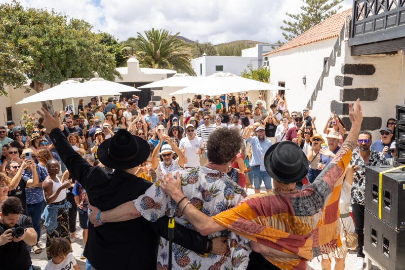 Durante el transcurso del medio día, el público se dejó llevar por completo por la apasionante energía de la banda originaria de Suiza. El impresionante concierto en vivo se celebró en la emblemática Casa Ajei, y fue organizado con la inestimable colaboración del Ayuntamiento de San Bartolomé. A su vez, los asistentes pudieron catar varias referencias de bodegas como Bermejos, El Grifo y La Florida (todas situadas en el municipio), y Titerok Akaet.