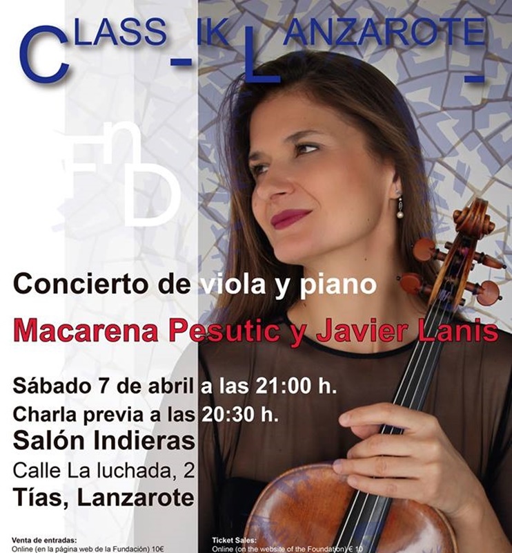Estos conciertos de música clásica cuentan con la colaboración del Ayuntamiento de Tías. Según informan desde el Ayuntamiento de Tías, este segundo concierto contará con la presencia de la viola chilena Macarena Pesutic, acompañada al piano por Javier Lanis, que ofrecerán un concierto que se abrirá con la Sonata para viola y piano Op. 11 n.º 4 del compositor alemán Paul Hindemith (1895–1963), uno de los representantes del neoclasicismo.