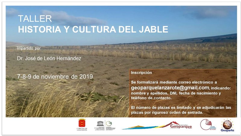 El Cabildo de Lanzarote, a través de Geoparque Lanzarote que dirige el consejero Hugo Delgado, pone en marcha un taller los días 7,8 y 9 de noviembre sobre la historia y la cultura de El Jable impartido por el arqueólogo José de León y la proyección de un documental 'La Cultura de El Jable' (8 de noviembre en la Sociedad El Fomento de Tao), ambos con entrada libre y gratuita previa inscripción.