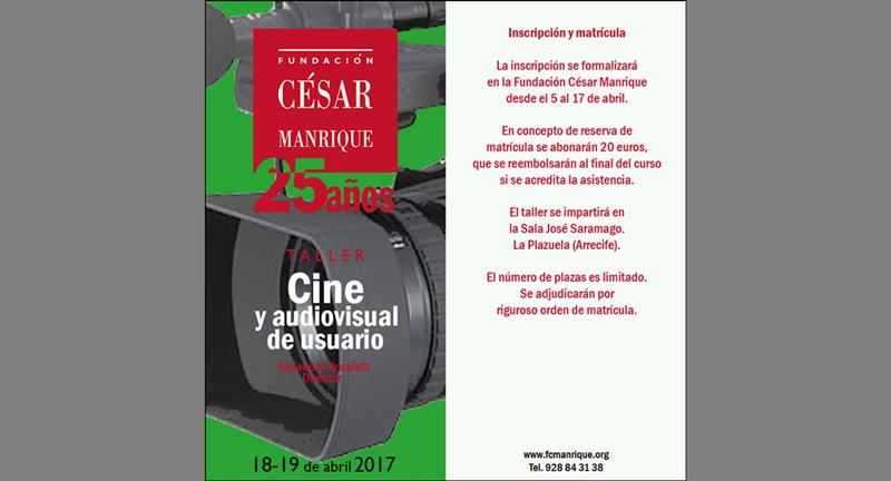 La Fundación César Manrique organiza para los próximos días 18 y 19 de abril un Taller de Cine y Audiovisual de Usuario impartido por Alejandro Krawietz, escritor y director del Festival Internacional de Cine Documental MiradasDoc.