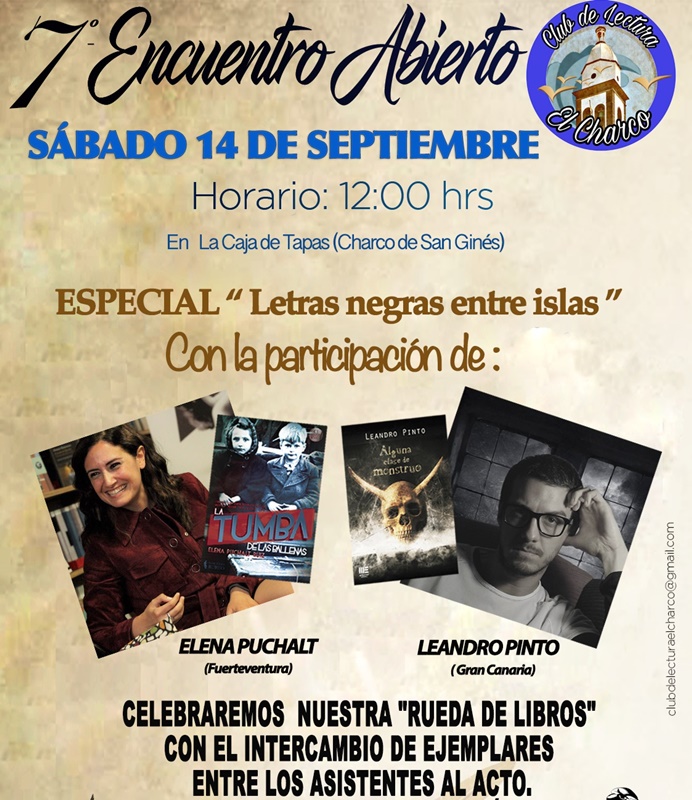 En esta ocasión, la actividad estará dedicada al género negro, el misterio y el terror, estilos narrativos de las últimas obras de los autores invitados; Elena Puchalt, que se desplazará hasta Arrecife desde Fuerteventura, y Leandro Pinto que viajará desde Gran Canaria.