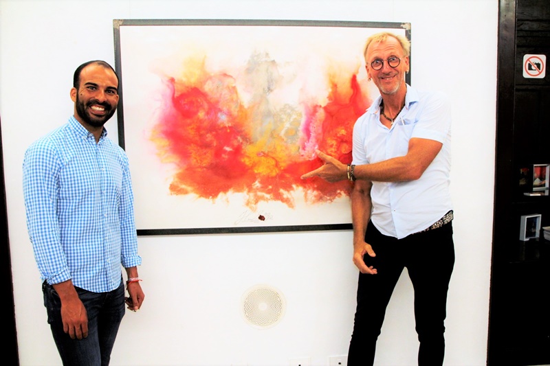 La intensidad colorida del magma, la fuerza que evocan los volcanes, así como lo que el artista llama "ajetreo" del fondo marino quedan reflejados en las pinturas colgadas en Yaiza. Christian Honerkamp tiene estudios en diseño de modas y vestuario y su trayectoria profesional además da cuenta de su experiencia como estilista en fotografía y publicista de películas.