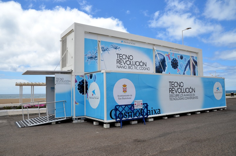 Playa Honda acoge la muestra Tecnorrevolución. Una exposición itinerante organizada por “la Caixa” y el Ayuntamiento de San Bartolomé con el fin de dar a conocer los avances de las tecnologías convergentes cuya aplicación ha aportado progresos impensables. La exposición podrá visitarse en el camión instalado en el parking de la explanada de Guacimeta del 2 al 19 de julio.