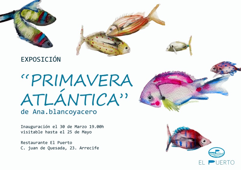 La arquitecta y artista Ana Ruiz expondrá su obra 'Primavera atlántica' del 30 de marzo al 25 de mayo en el restaurante El Puerto en Arrecife, Lanzarote. La muestra podrá visitarse de lunes a sábado de 12.00 h a 02.00 h, y recoge los trabajos que ha realizado en acuarela sobre la fauna marina canaria.