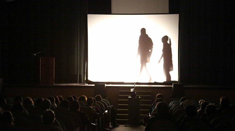 El actor Óskar Hernández y la coreógrafa Fedra Fourouli sorprendieron al público asistente con una performance de sombras chinescas que recreaban diferentes escenas cinematográficas relacionadas con el programa de la Muestra de este año.