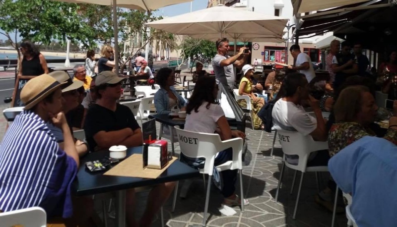 La Terraza Moet Arrecife, recientemente inaugurada, acogía la última actividad literaria del Club de Lectura El Charco antes del descanso estival y que supuso la presentación en sociedad de la joven escritora, a la vez que cantautora, Laura Cox, artista que ha mostrado públicamente su filosofía animalista y vegana, con un notable número de seguidores en redes sociales y en la plataforma musical YouTube, entre otras.