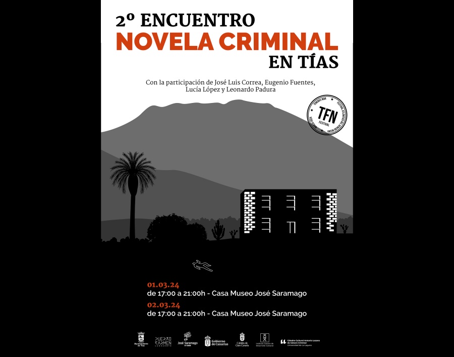 A Casa de José Saramago vuelve a ser la sede del Encuentro de Novela Criminal de Tías, que celebra este viernes 1 y sábado 2 de marzo su segunda edición, organizado por la Cátedra Cultural Antonio Lozano de Género Criminal de la Universidad de La Laguna (ULL), en colaboración con el Festival Atlántico de Género Negro Tenerife Noir y financiado por el Ayuntamiento de Tías a través de su Concejalía de Cultura. De carácter gratuito, la participación es de acceso gratuito hasta completar el aforo y se precisa una inscripción previa, que se gestiona en el teléfono 928 596 087 o a través de correo electrónico, escribiendo a: