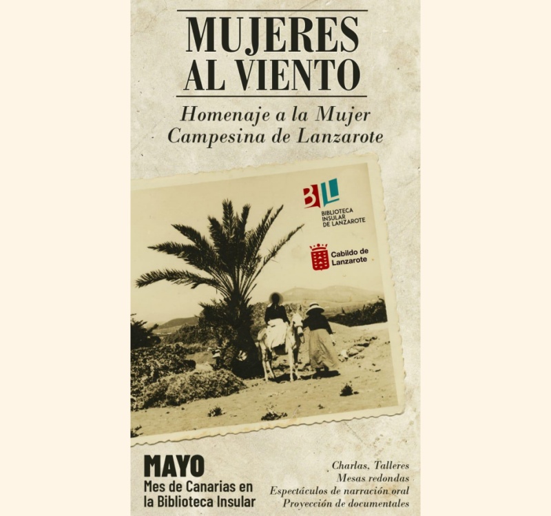 El Cabildo de Lanzarote organiza en el mes de mayo el proyecto 'Mujeres al viento', una iniciativa destinada a homenajear al colectivo de mujeres campesinas de la Isla. Para ello, la Institución insular prepara una agenda compuesta por una decena de actividades y actos culturales que se llevarán a cabo en la Biblioteca Insular de Lanzarote.
