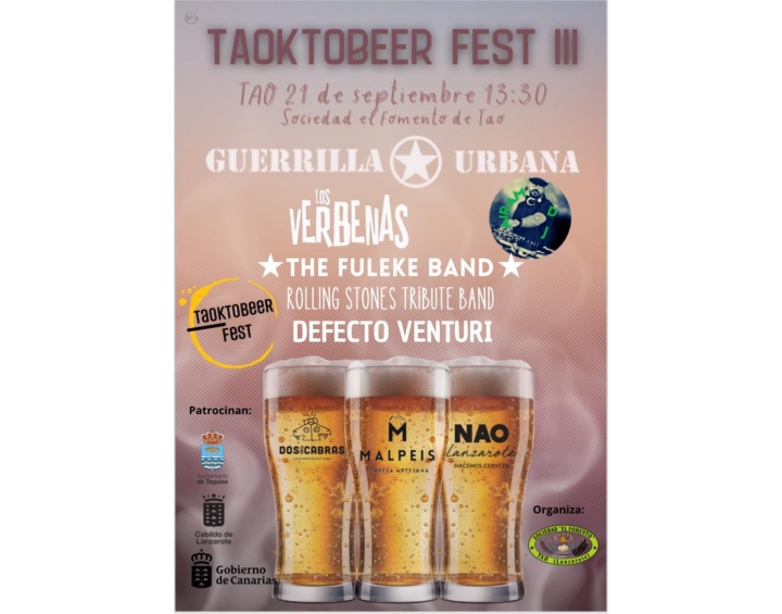 Música, cerveza y buen ambiente, ¿qué más se puede pedir? Que sea aquí, en Lanzarote. Y así es, el próximo 21 de septiembre los amantes de la buena música tienen una cita, a partir de las 13:30 en el Festival de la Cerveza de Tao.