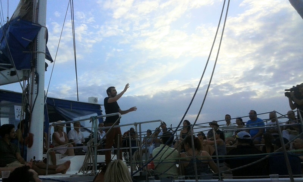 El pasado sábado, más de un centenar de personas se dieron cita a bordo del catamarán Princess Cat de Líneas Romero para disfrutar de los "Cuentos entre olas y volcanes".