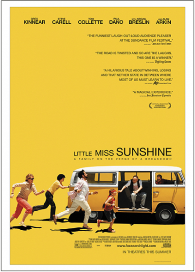 Una película del 2006 donde el personaje principal es una niña que tiene admiración por las misses y se apunta a un concurso de belleza. Lo mejor de la película son los personajes que rodean a la niña. El primero es su padre, un hombre perfeccionista pero fracasado; una madre entregada ama de casa; el hermano adolescente que se ha hecho una auto promesa; su tío que es un gay suicida y su abuelo que es un veterano de la guerra de vietnam cocainómano. Es una película muy divertida y vale la pena verla en cualquier momento o situación.