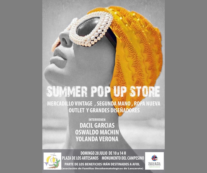 Summer Pop Up Store. El Monumento del Campesino acoge este domingo 28 de julio un mercadillo de ropa de segunda mano, nueva, vintage y oulet. Organizado por Yolanda Verona, el diseñador Oswaldo Machín y Dácil Garcias. La cita es de 10 a 14 horas.