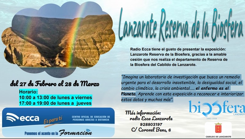 El Centro Oficial de Educación de Personas Adultas a Distancia, Radio Ecca, organiza la exposición “Lanzarote Reserva de la Biosfera” que podrá disfrutarse en sus instalaciones, ubicadas en la calle Coronel Bens, número 6 de Arrecife, hasta el próximo 28 de marzo.