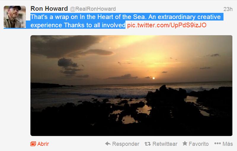 Ron Howard deja nuevas fotos de su rodaje en El Golfo en Twitter