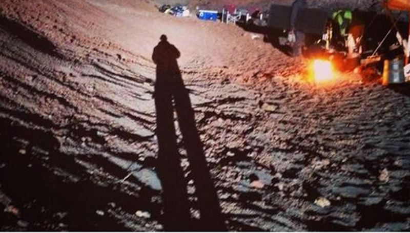 En las imágenes, se puede ver la salina de la luna en la playa rocosa de El Golfo durante la grabación de una escena dramática, así como una fotografía de su sombra sobre las rocas.