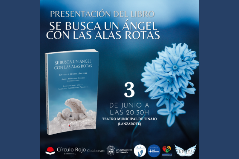 La Asociación ALUDME, junto a Ángel Meseguer presentarán el próximo viernes 3 de junio en Tinajo (Lanzarote) el libro: “Se busca un ángel con las alas rotas”, inspirado en las propias experiencias y recuerdos del autor, así como en los testimonios de un gran número de afectados por distonía.