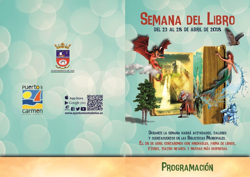 El Ayuntamiento de Tías, a través de la Concejalía de Cultura, ha organizado un completo programa de actividades con motivo de la nueva celebración del Día del Libro, que se lleva celebrando desde que en 1926 la Conferencia General de la UNESCO quisiera rendir un homenaje mundial al libro y sus autores haciéndolo coincidir con la fecha, 23 de abril, en la que murieron dos grandes de la literatura universal como William Shakespeare y Miguel de Cervantes.