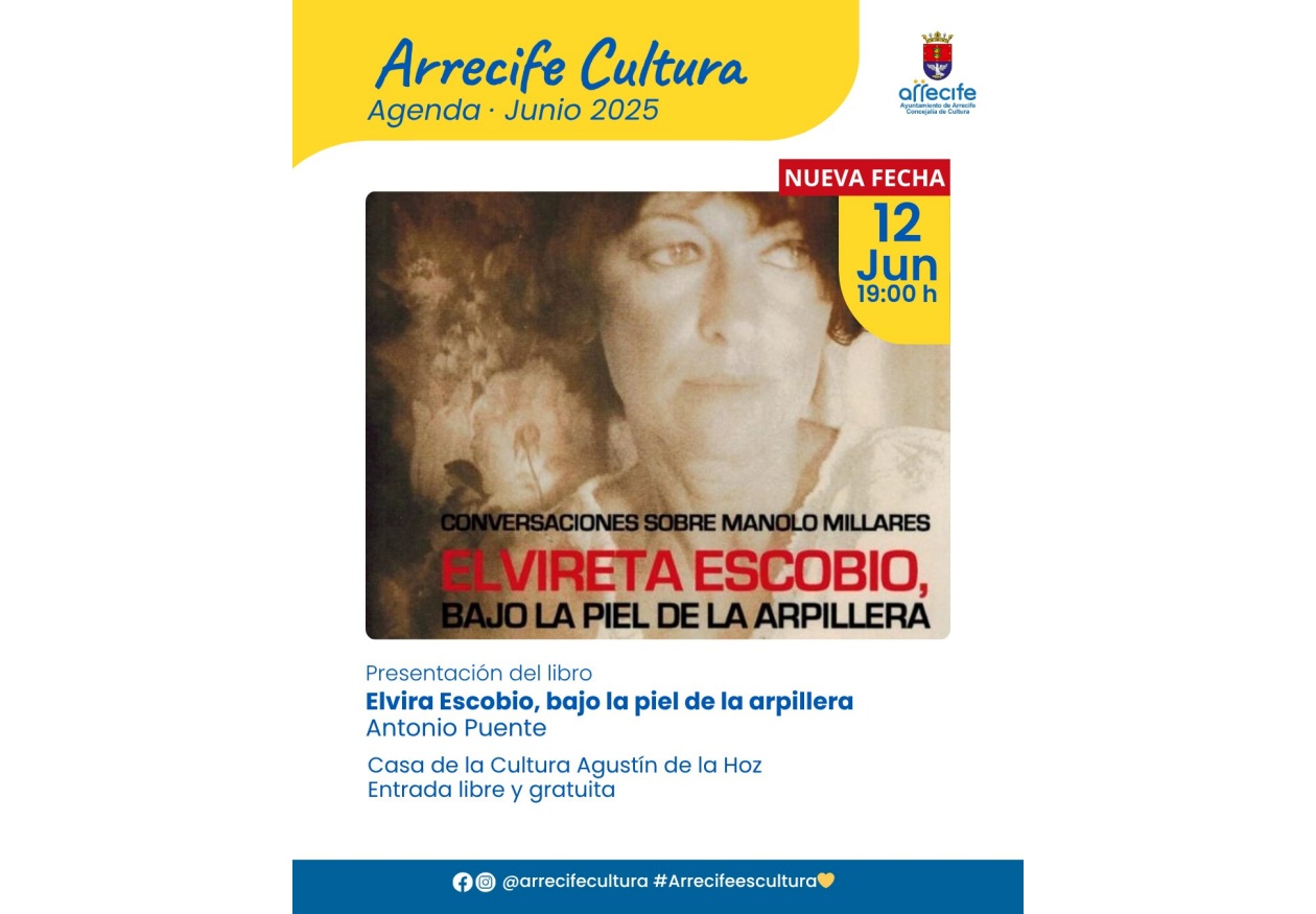 "Este acto supone un homenaje y reconocimiento de nuestra ciudad a la figura de Elvireta Escobio, una mujer clave en el arte contemporáneo en Canarias". Así se refiere la concejala de Cultura del Ayuntamiento de Arrecife, Abigail González, a la presentación a partir de las 19 horas de este jueves 12 de "Conversaciones con Manolo Millares. Elvireta Escobio, bajo la piel de la arpillera".