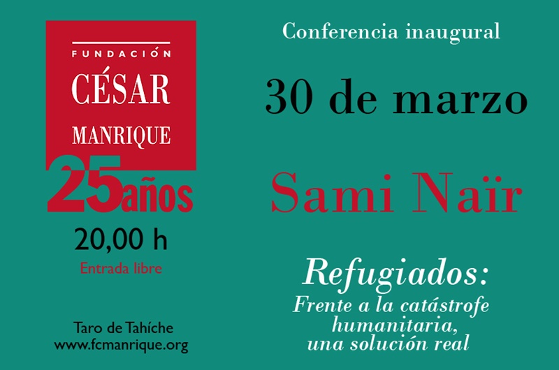 La sede de la Fundación César Manrique (Taro de Tahíche) recibirá el jueves 30 de marzo, a las 20:00 horas, a Sami Naïr que pronunciará la conferencia titulada "Refugiados: Frente a la catástrofe humanitaria, una solución real", con la que la FCM inaugura la actividad cultural que desarrollará durante el año 2017.
