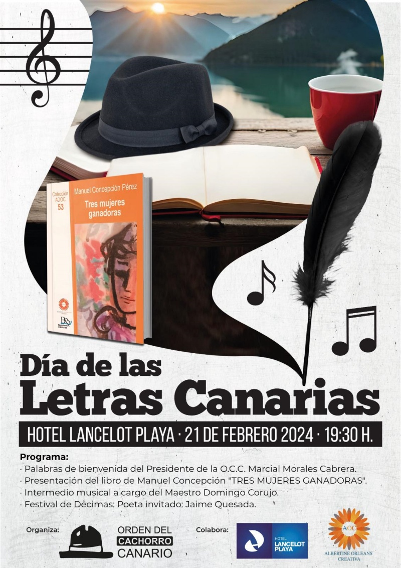 Por otra parte, la Orden Del Cachorro Canario de Lanzarote, ha organizado una serie de actos, entre ellos la presentación del libro de Manuel Concepción “Tres mujeres ganadoras”, el mismo 21 de febrero, a las 19:30, en Los Salones del Hotel Lancelot Playa.