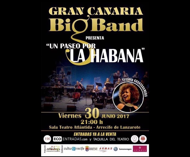 La Gran Canaria Big Band y la cantante cubana Virginia Guantanamera estrenan mañana viernes 30 de junio a partir de las 21:00 horas "Un Paseo por la Habana", de la mano de la Concejalía de Cultura del Ayuntamiento de Arrecife, que dirige Rafael Juan González.