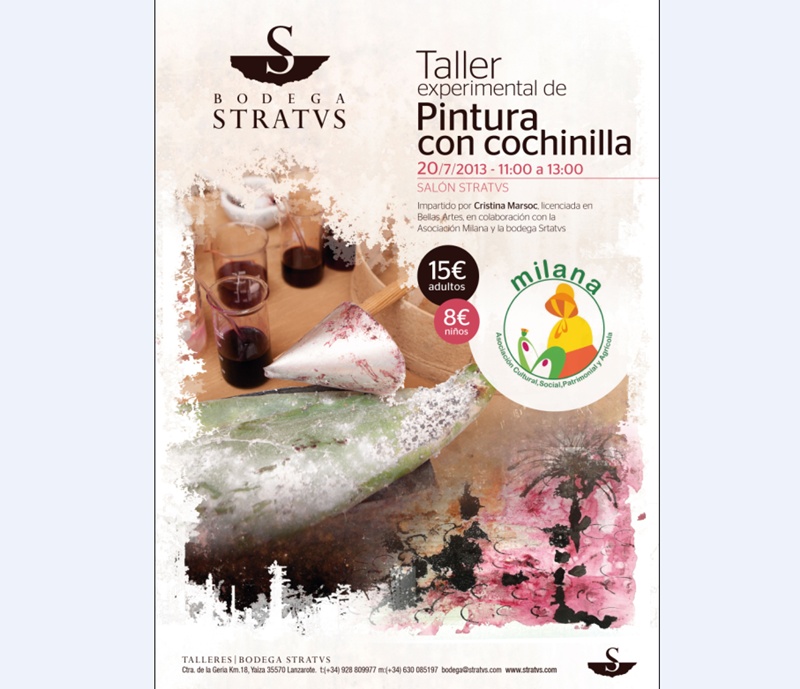 Bodegas Stratvs continúa ofreciendo actividades diferentes y en esta ocasión, ha decidido organizar un taller experimental de pintura con cochinilla. Éste será impartido por Cristina Marsoc, licenciada en Bellas Artes, y contará con la colaboración de la Asociación Milana.