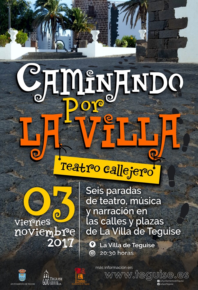 El área de Cultura de Teguise, que coordina Olivia Duque, propone a los amantes del teatro y la cultura callejera una nueva edición de "Caminando por La Villa", que nació con el objetivo de recuperar el teatro y la narración callejera, tal y como hacían los antiguos juglares en época pasadas.