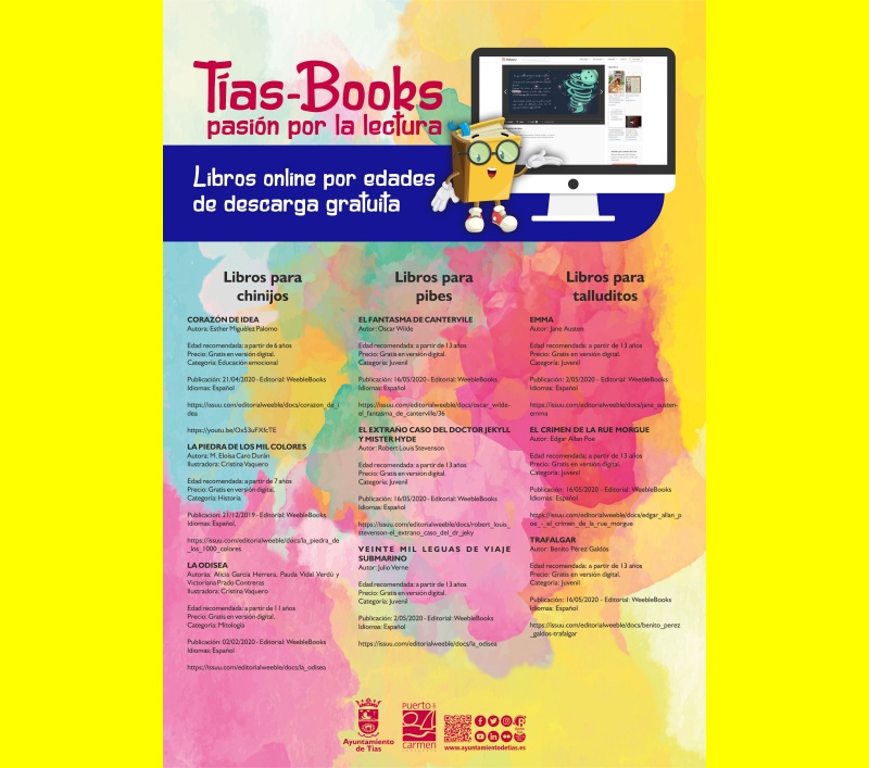 El Ayuntamiento de Tías propone a los más pequeños del municipio que participen en la campaña para fomentar la lectura ideada desde la Concejalía de Cultura bajo la denominación "Tías books, pasión por la lectura". El objetivo es que los niños y jóvenes disfruten con cuentos entrañables o con textos clásicos que les ayuden a estimular la percepción, la concentración o la empatía.