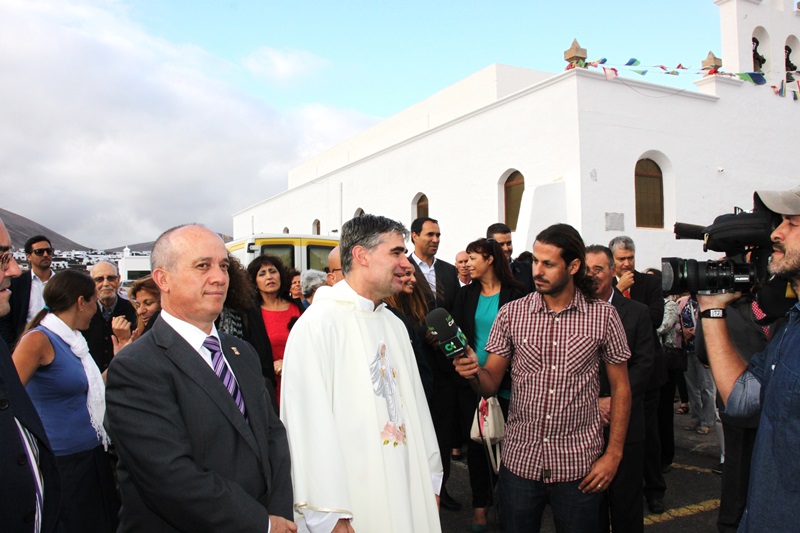 La Corporación Municipal de Tías, con el alcalde Pancho Hernández, estuvo presente en esta función religiosa, acompañando al párroco del municipio, Ricardo Miranda Marrero, durante la posterior procesión con la imagen del santo.