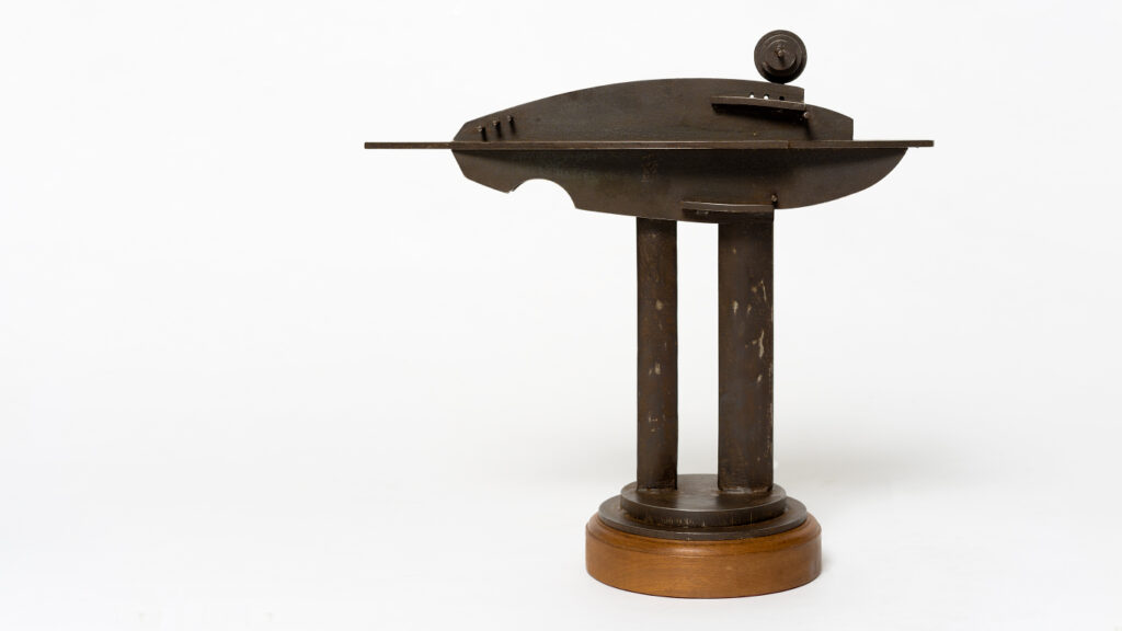 A través de la abstracción, logra un lenguaje universalista que se expande orgánica y coherentemente en una diversidad de medios y ámbitos como el collage, la escultura y la pintura, convirtiendo lo específico en algo común y permitiendo así una mayor comprensión y empatía hacia lo desconocido. Construye sus obras como si de un astillero se tratase, plegando áreas de color, tensando materiales y moldeando el espacio para crear piezas que trascienden lo costero y nos transportan a un territorio conceptual y fluido. En este espacio, nos conectamos con lo propio y lo vivencial sumergiéndonos en una experiencia artística que nos invita a navegar en una nave metafórica por las aguas del arte y de la vida. El artista es un constructor que ensambla la abstracción y la poesía en un universo que nos habla de las relaciones entre el ser humano y la mar.