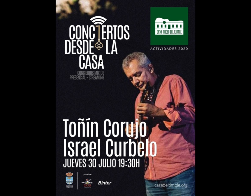 La Villa de Teguise acogerá una nueva propuesta musical con acento canario, tras iniciar su programa de eventos culturales de la Casa Museo del Timple con la actuación de Beni Ferrer el pasado jueves. En esta ocasión, el próximo 30 de julio, a las 19.30 horas, serán los músicos Toñín Corujo (timple y guitarra) e Israel Curbelo (voz, teclados y percusiones) los encargados de retomar el sonido del timple en vivo -aunque para unos pocos debido al aforo limitado- pero sí para el gran público a través de las redes, puesto que se retransmitirá en streaming en el canal oficial de Youtube de la Casa Museo, así como en las cuentas de Facebook de la Casa y del Departamento de Cultura de Teguise.