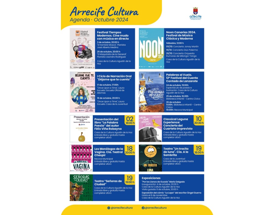 La Concejalía de Cultura del Ayuntamiento de Arrecife, liderada por Abigail González, ha diseñado un mes más, una ambiciosa programación cultural.