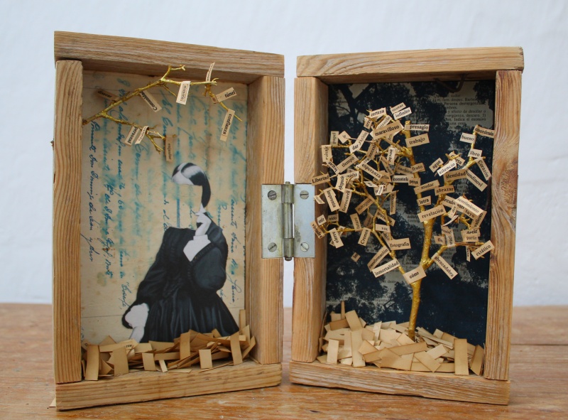 “Pienso en mis obras como si fueran souvenires de sueños, alucinaciones, o al menos eso intento hacer; me interesa mucho la relación entre el lenguaje, la memoria y los recuerdos. Uso lo que tengo a mano, maderas que trajo el mar, cartas viejas, cianotipos hechos por mí e imágenes de revistas y libros que encuentro . Para mí que hayan seleccionado mi obra fue una sorpresa y una alegría indescriptible, ya que siempre sentí temor al mostrar mi trabajo”