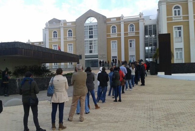 La cola para conseguir entradas para Les Luthiers era espectacular a primera hora de este martes. Desde las 9.00 horas en el Área de Cultura del Cabildo se ponían a la venta los tickets para esta doble función que tendrá lugar los días 10 y 11 de marzo en el Teatro Insular.
