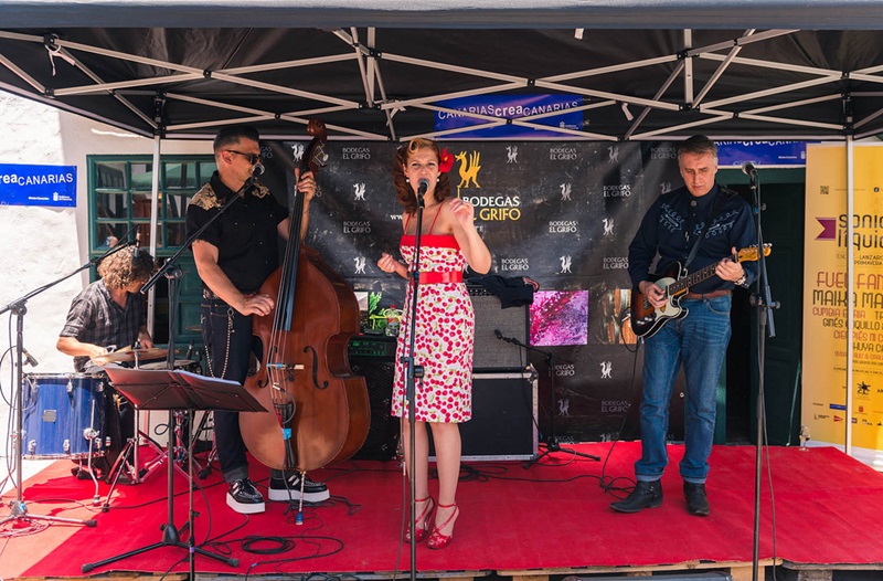 Unas 150 personas disfrutaron este domingo en Bodegas El Grifo de un nuevo maridaje de buena música, en esta ocasión la ofrecida por el grupo palmero ‘Tihuya Cats’, y excelentes vinos Denominación de Origen Lanzarote que los presentes tuvieron oportunidad de paladear en compañía de deliciosas tapas ofrecidas por el chef del restaurante Lilium, Orlando Ortega, en representación del colectivo Lanzarote Cocina.
