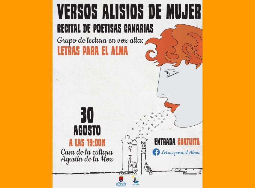 Este recital de poesía femenina canaria tendrá lugar el viernes 30 de agosto a las 19:00 horas en la Casa de la Cultura Agustín de la Hoz