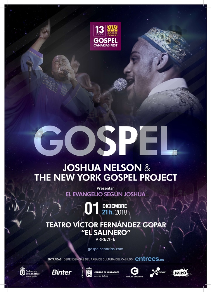 Regresa a la isla de Lanzarote el Canarias Gospel Festival. El evento que reúne en Canarias a algunos de los mejores grupos del mundo en la música espiritual vuelve a recalar en la isla y lo hará con una actuación de primer nivel: Joshua Nelson & The New Yorkers Gospel Project. El grupo que lidera el norteamericano Nelson, formado por más de 10 componentes, estará actuando este sábado 1 de diciembre, a las 20.30 h en el Teatro Víctor Fernández Gopar "El Salinero", en una actuación que organizan el propio Canarias Gospel Festival y el área de Cultura del Cabildo de Lanzarote, que coordina el consejero Óscar Pérez.