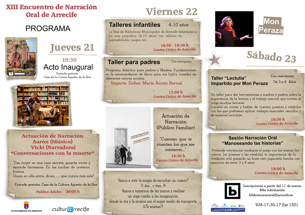 Con motivo del Día Mundial de la Narración Oral, instalado en el calendario el 20 de marzo, la red de Bibliotecas de Arrecife organiza un Encuentro que cumple este año su decimotercera edición.