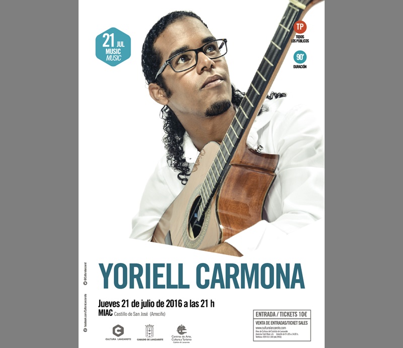 Las entradas para ver a Yoriell Carmona cuestan 10 euros y pueden adquirirse en www.culturalanzarote.com. También pueden comprarse en el área de Cultura del Cabildo de Lanzarote (sede del Cabildo, Avda. Fred Olsen s/n, Arrecife) de 9.00 a 14.00 horas, y en la taquilla de MIAC-Castillo de San José desde una hora antes del comienzo de la función, pero sólo en el caso de que no se hayan agotado previamente.